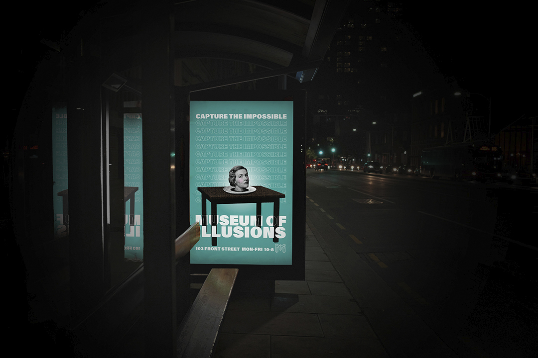 Museum of Illusions is a conceptual advertising campaign for the Toronto attraction, drawing inspiration from 1950s print advertising aesthetics. The project promotes the museum’s hands-on, in-camera illusions and interactive photo opportunities through a vintage visual language.